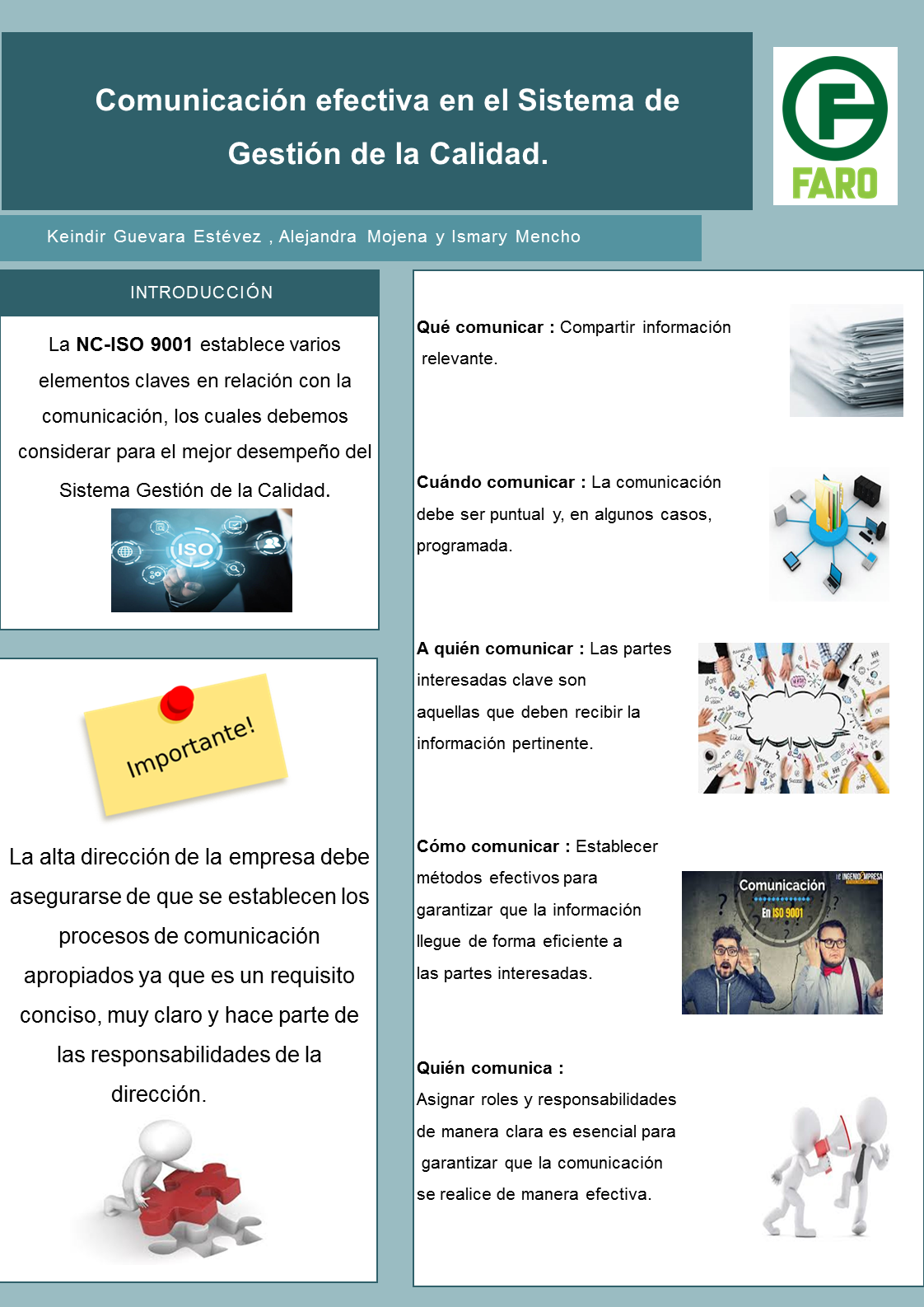 La comunicación efectiva es fundamental en un Sistema de Gestión de la Calidad (SGC) porque asegura que todos los miembros de la organización estén alineados con los objetivos de calidad y los procedimientos establecidos. Aquí algunos aspectos clave: